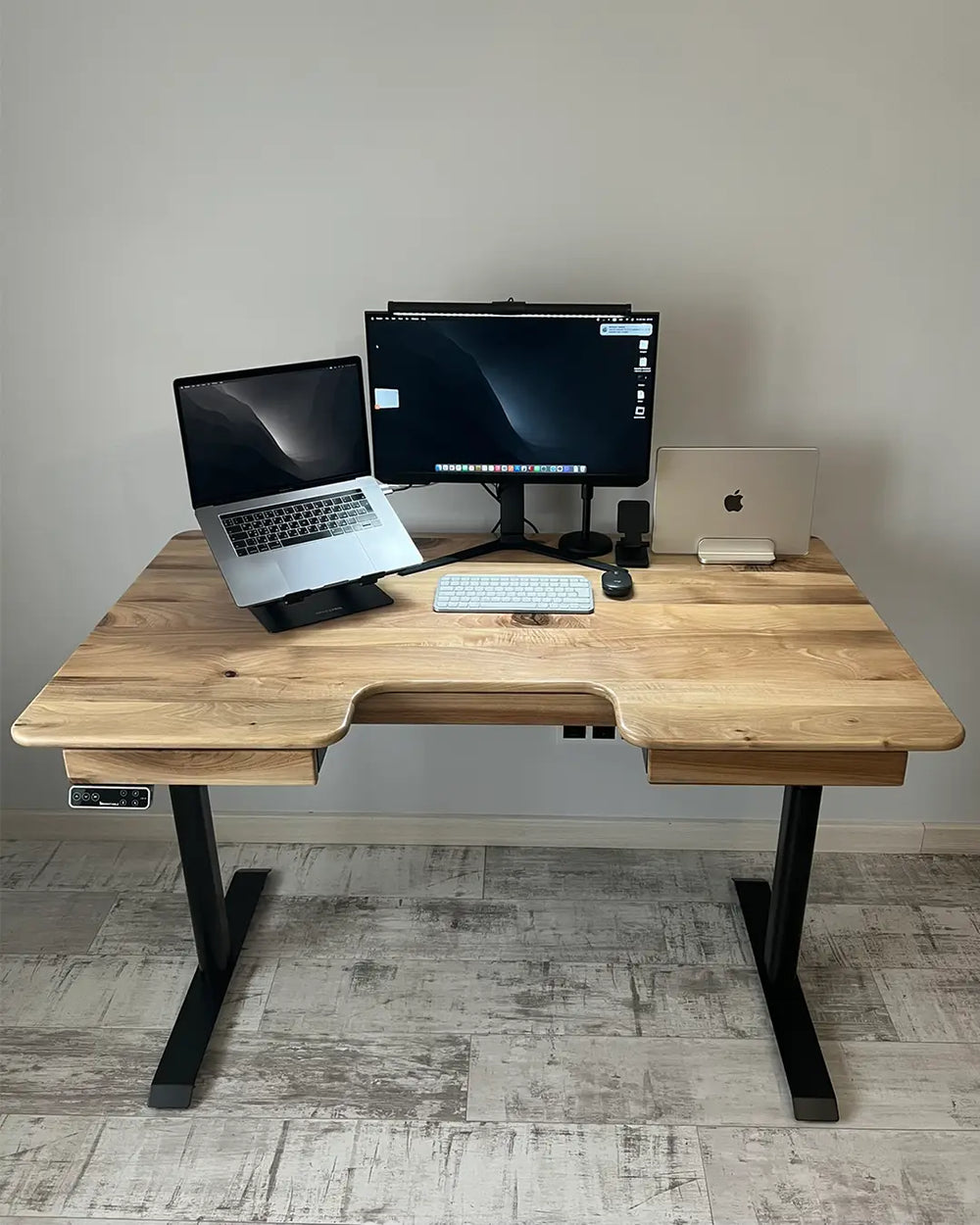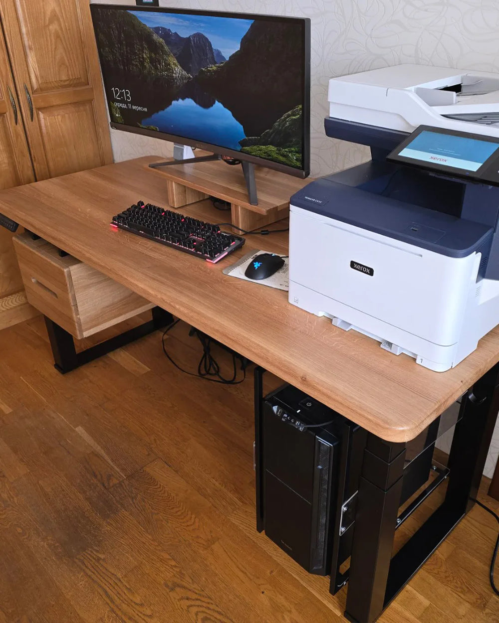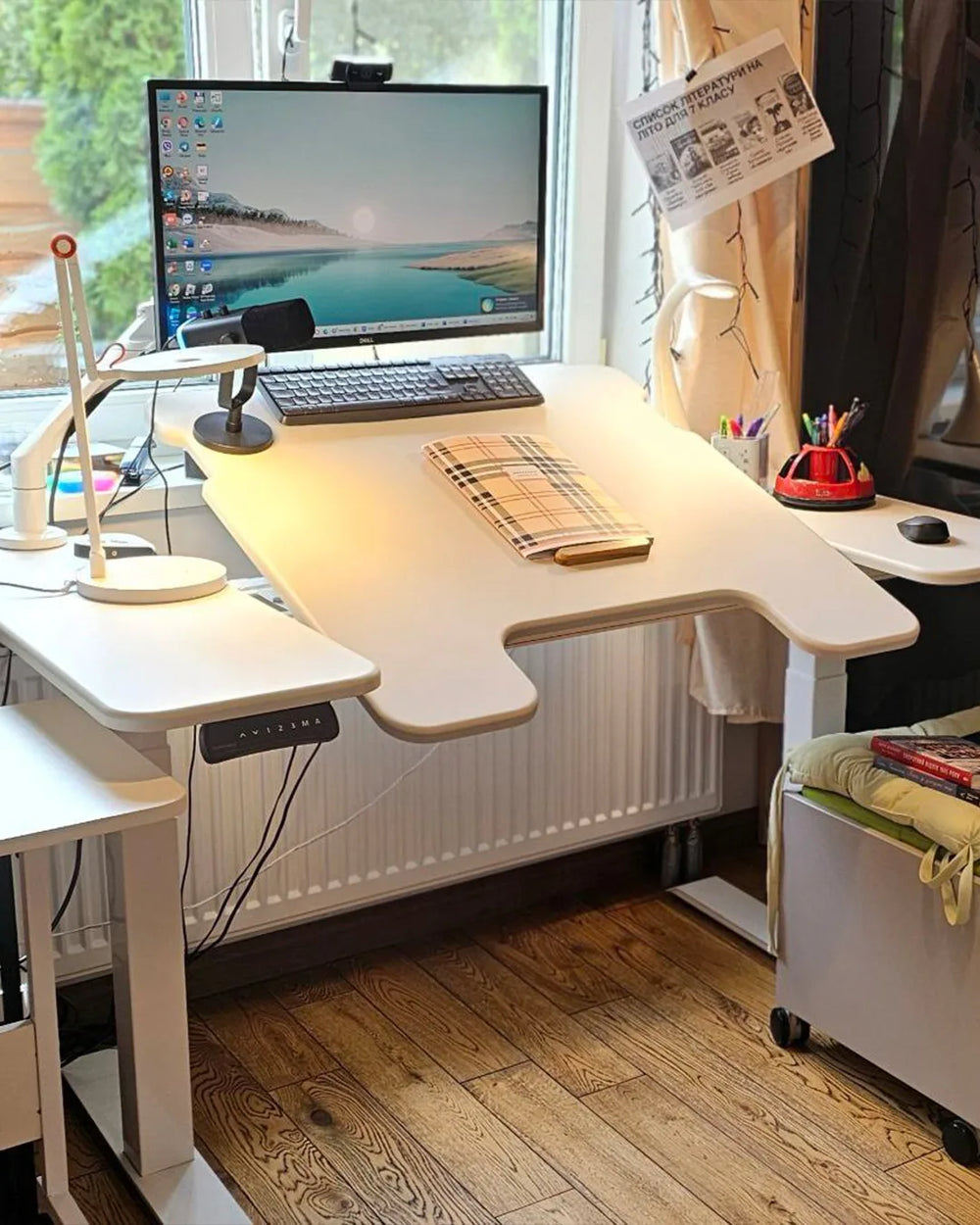 Ми пропонуємо понад 30 вбудованих та додаткових аксесуарів для столів з регулюванням висоти:від холдера для системного блоку, вбудованих шухляд і кабель-менеджменту — до поличок під монітор та інших рішень для зручної організації простору.