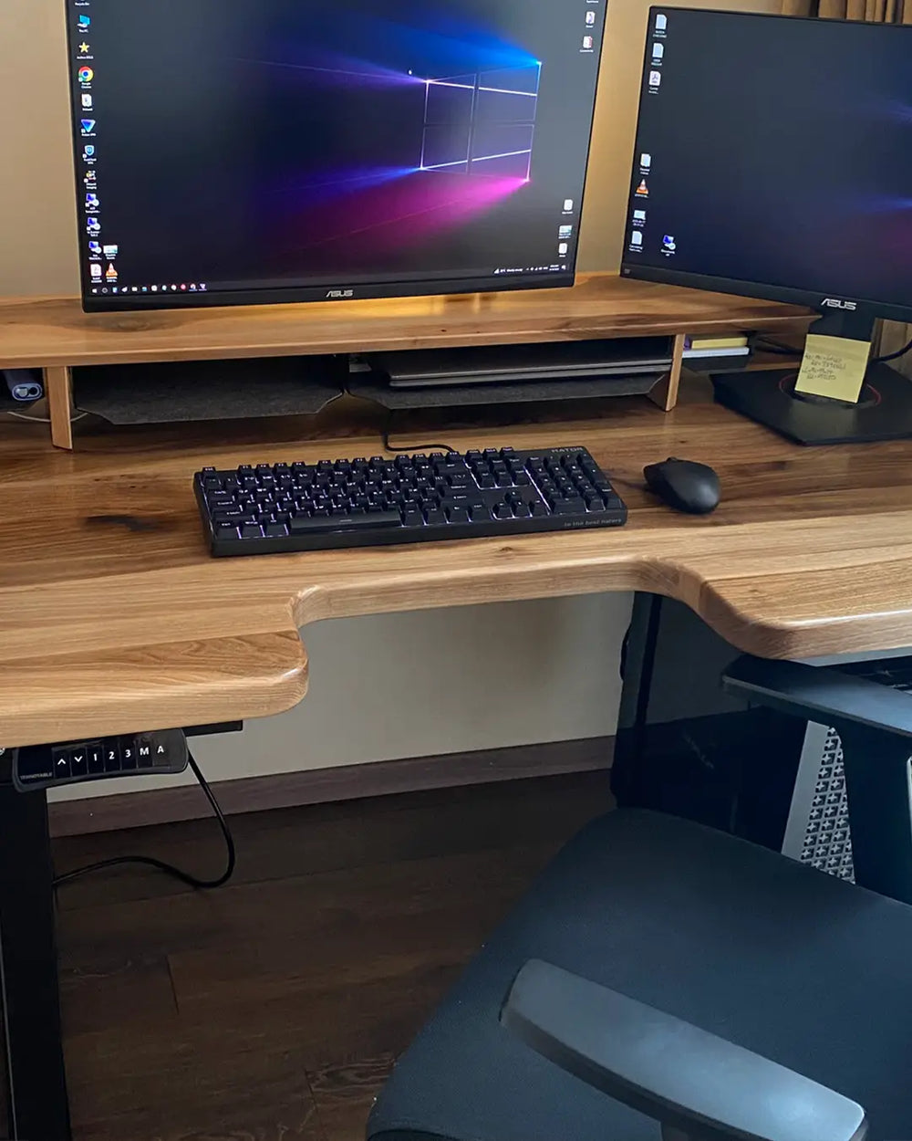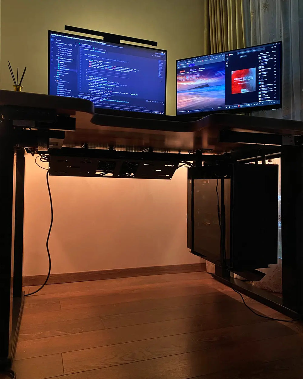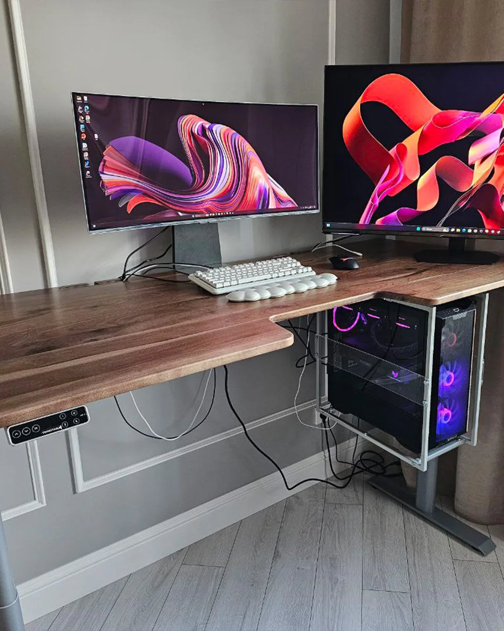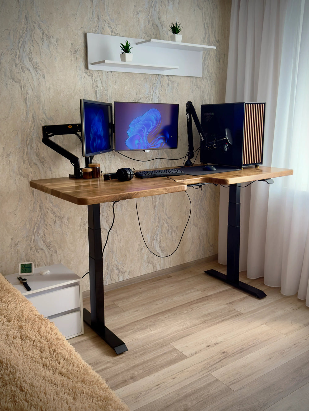 Ми пропонуємо понад 30 вбудованих та додаткових аксесуарів для столів з регулюванням висоти:від холдера для системного блоку, вбудованих шухляд і кабель-менеджменту — до поличок під монітор та інших рішень для зручної організації простору.