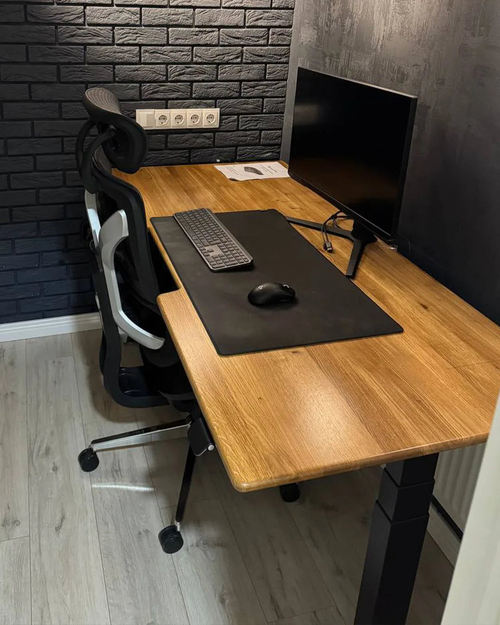 Матеріал: дерево, HPL, МДФ або ДСП. Обери форму, розмір і колір з нашої палітри. Кути можуть бути округленими чи гострими. За бажанням — ергономічний виріз у центрі.