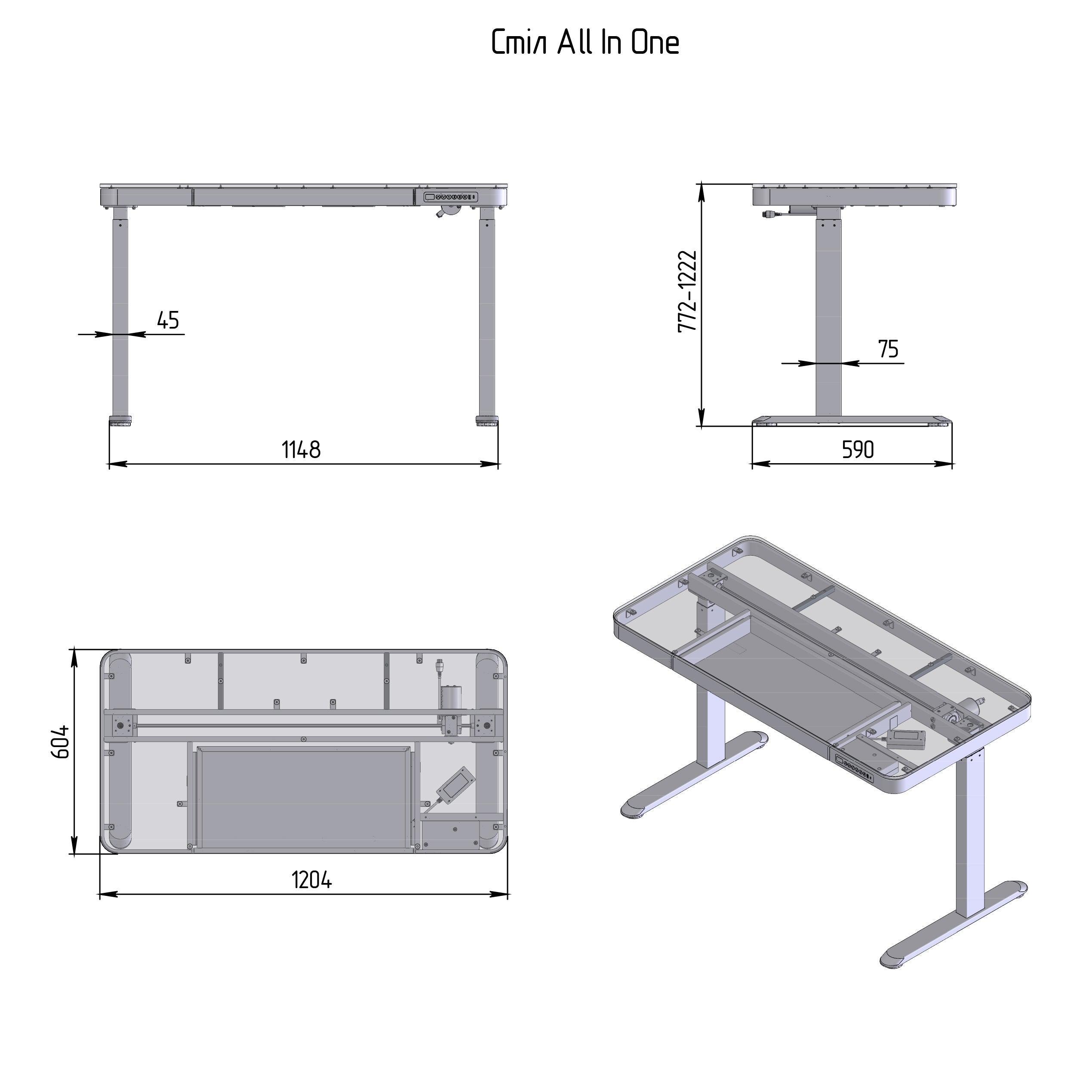Стіл All in One - це стіл трансформер. Оснащений 1 двигуном, стіл забезпечує плавне і швидке регулювання висоти від 72 см до 122 см , дозволяючи легко переходити з положення сидячи до стоячи за менш ніж 10 секунд.