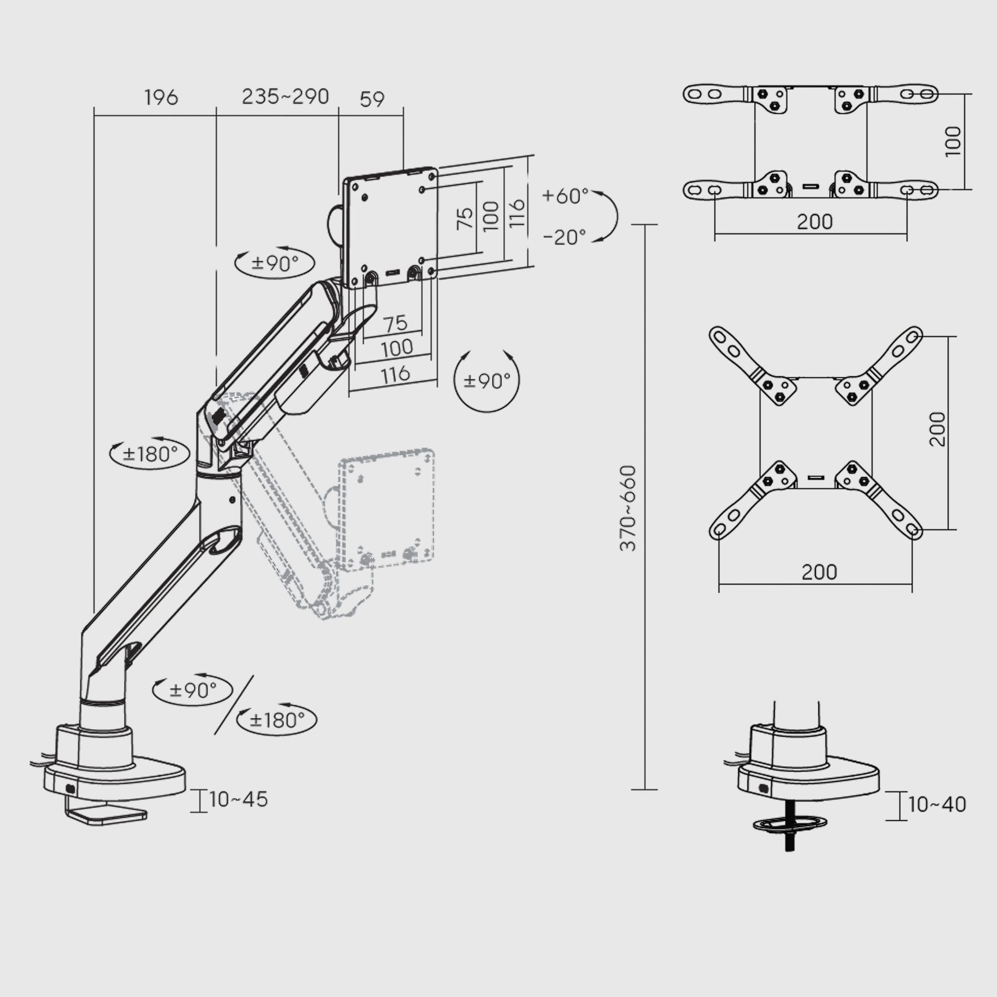 ● Height and tilt adjustment: The ability to adjust the height and tilt of the screen is one of the most important requirements. For example, a high arm will be comfortable for tall users, while a vertical arm allows you to use the monitor in portrait orientation.