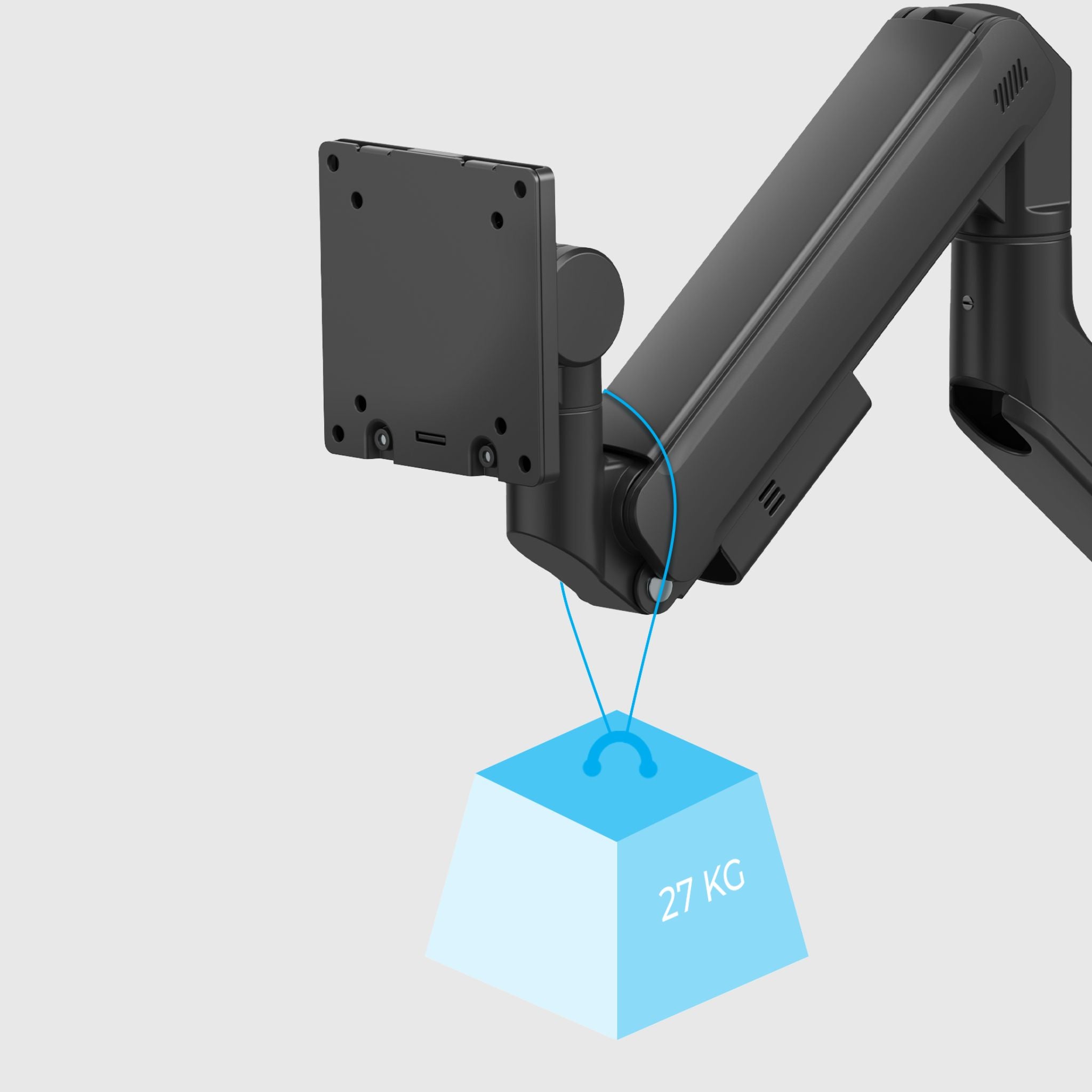 ● Load capacity. Make sure the mount can support the weight of your monitor. For example, 24", 27", 32" or even 36" screens will require different levels of support. If you are using two monitors at the same time, it is a good idea to choose a dual monitor mount, especially if both screens are large and heavy.