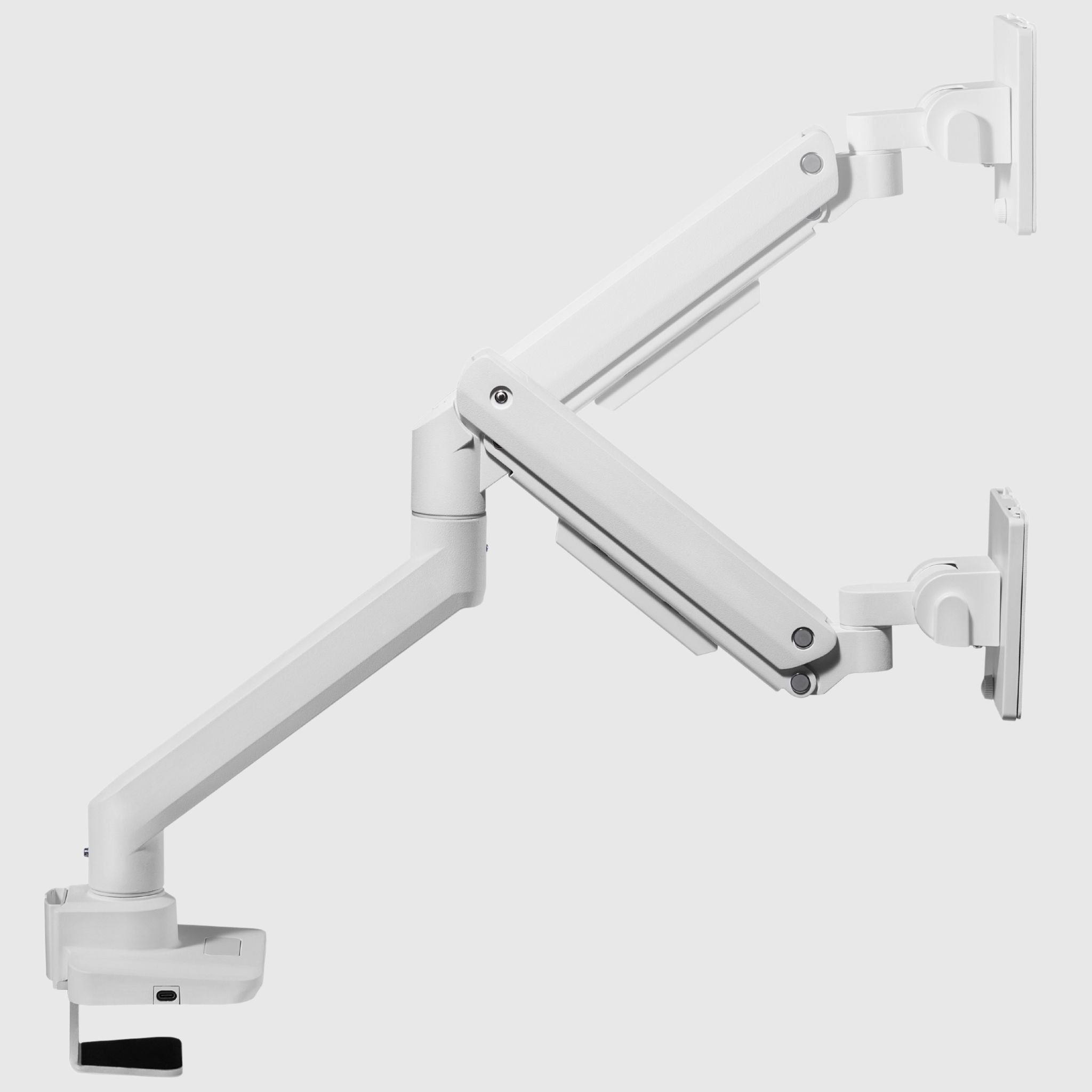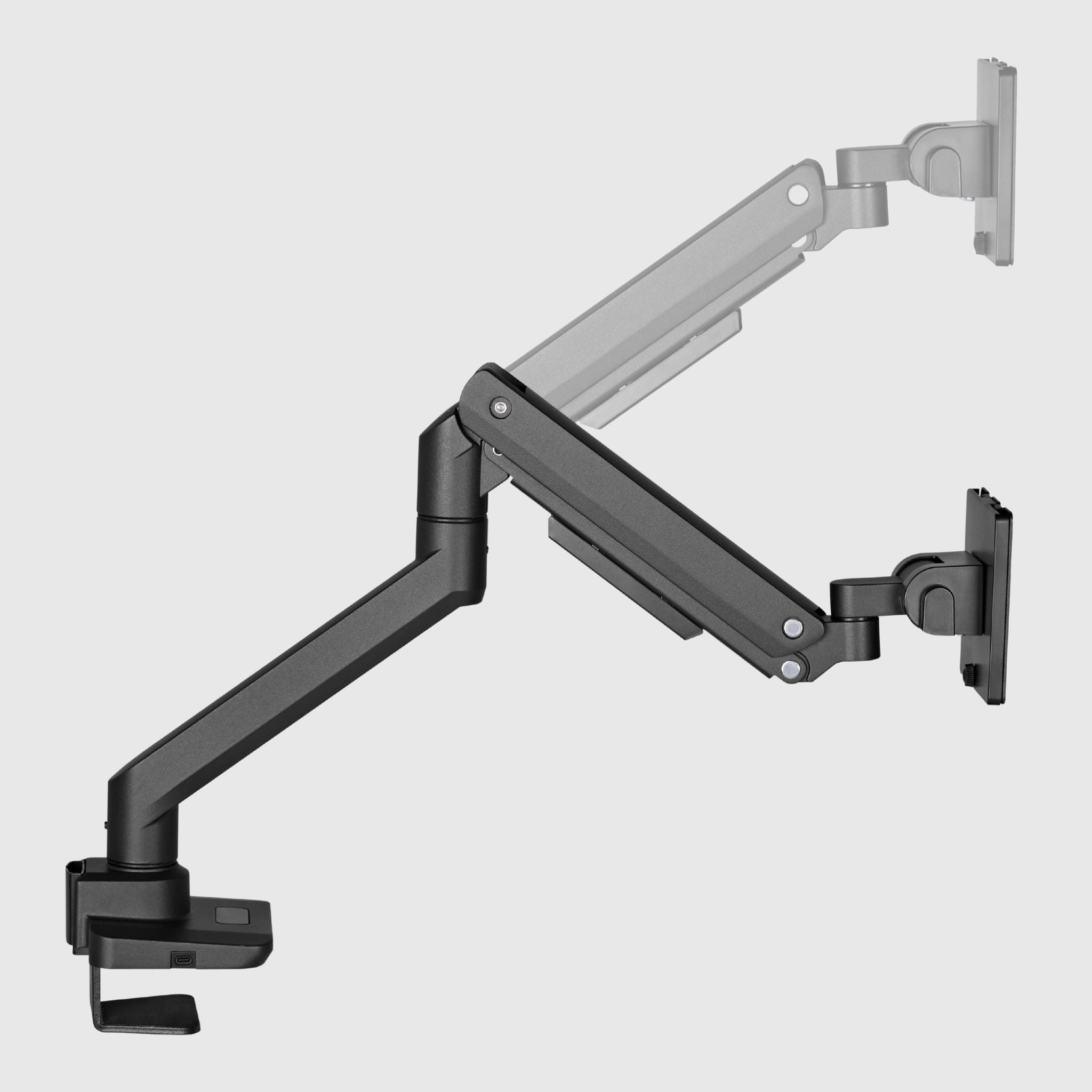 According to ISO 9241-5:1998, the optimal distance from the eyes to the monitor screen should be between 50 and 70 cm, and the top line of the screen should be at or slightly below eye level. These parameters are easy to maintain if you decide to purchase a monitor desk mount with a wide range of adjustment. For users who work with two screens, a dual monitor desk mount is the ideal solution - it provides a symmetrical arrangement of the displays and frees up workspace.