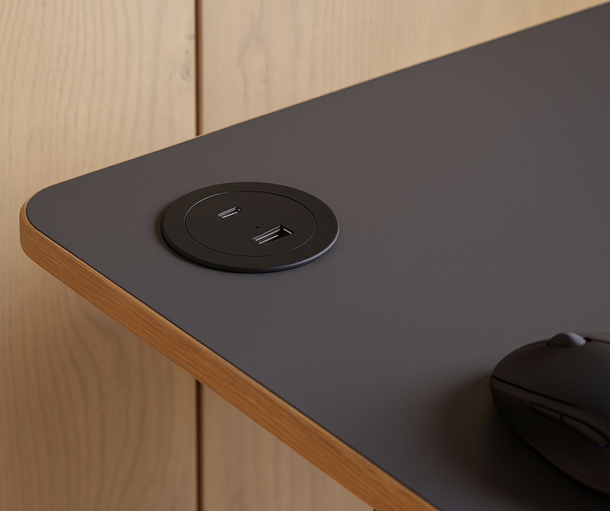 Компактна вбудована зарядна станція для стільниці — ідеальне рішення для офісу, дому або комерційного простору. Оснащена USB-C з підтримкою Power Delivery для швидкої зарядки ноутбуків, смартфонів, планшетів та іншої техніки.