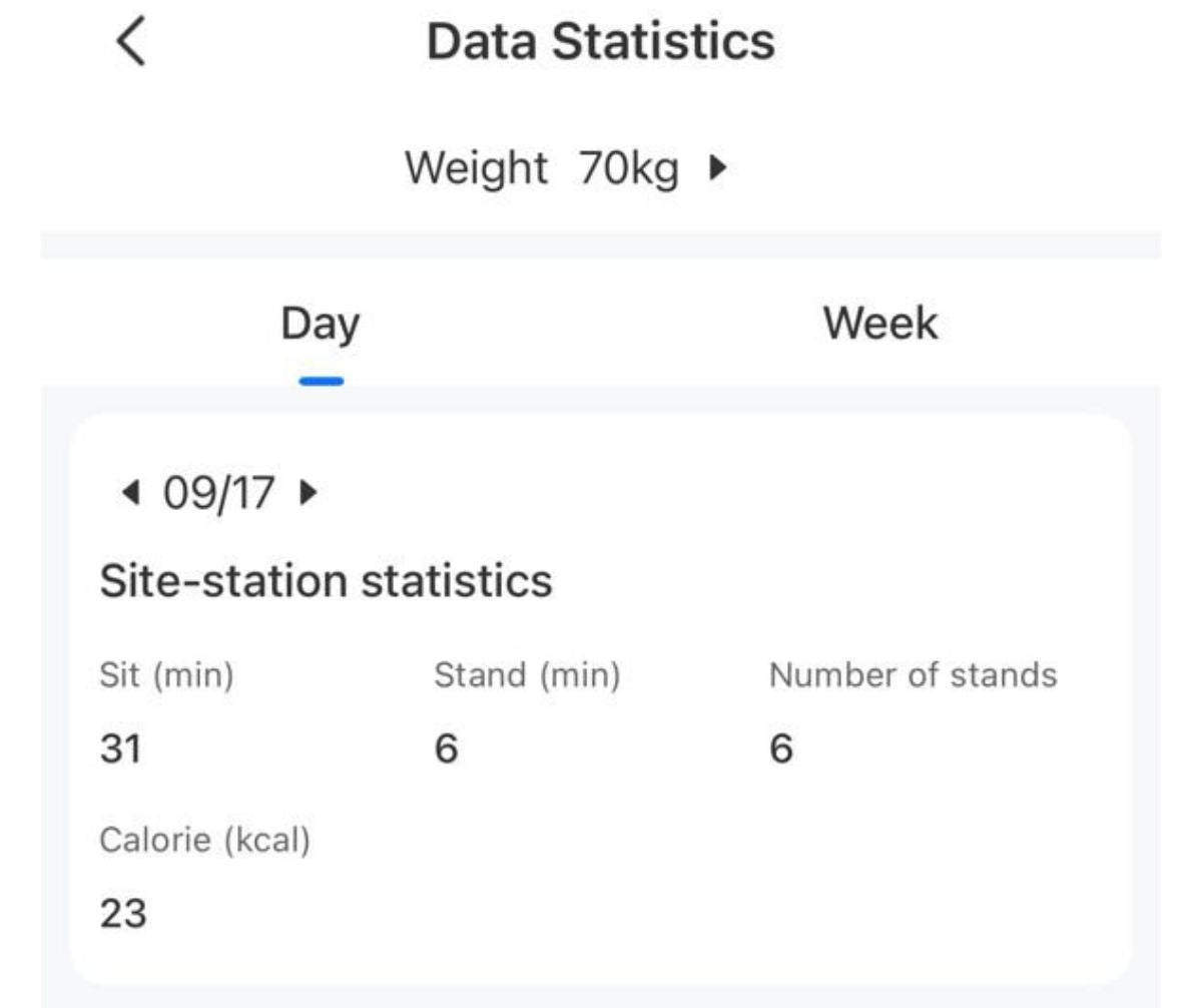 Статистика использования – отслеживание времени работы сидя и стоя.