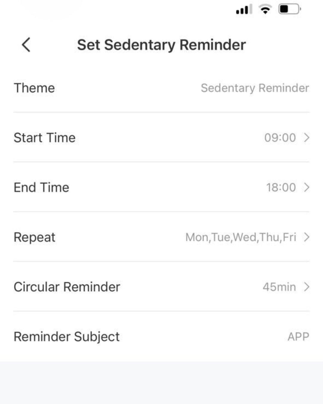 Напоминание – установление персональных напоминаний об изменении положения тела.