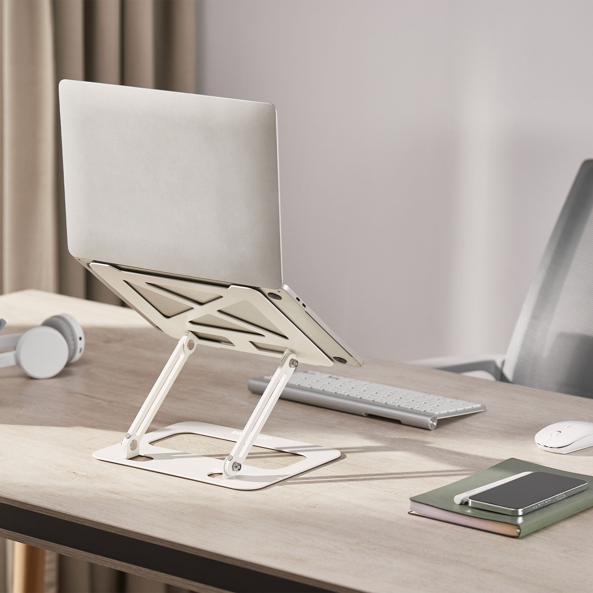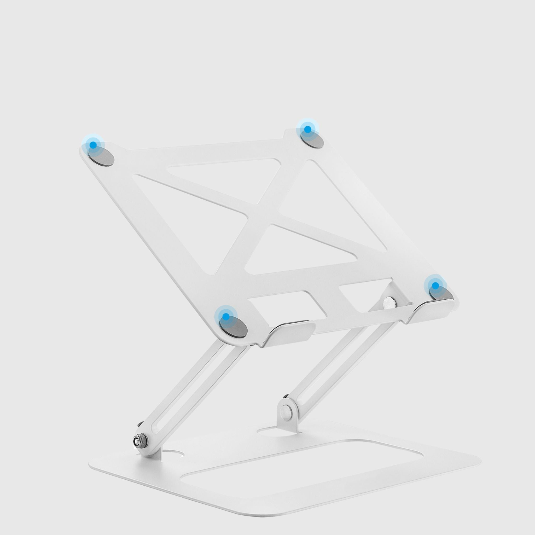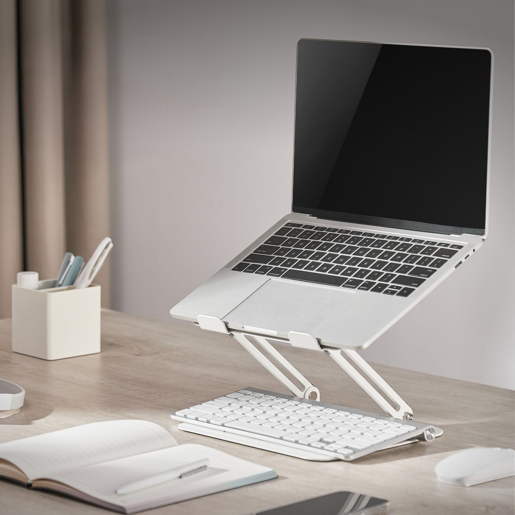 Сложная металлическая подставка для ноутбука LS380W White изготовлена из стали и алюминия, имеет гладкую поверхность и минималистичный дизайн. Два регулируемых кронштейна надежно удерживают ноутбуки с диагональю 11–15 дюймов, позволяя изменять высоту и угол наклона для эргономичного расположения экрана. Это снижает нагрузку на шею и спину, что подтверждено исследованиями эргономики (NIOSH, 2020). Открытая конструкция способствует естественной вентиляции, что помогает избегать перегрева устройства и продлевает срок службы.